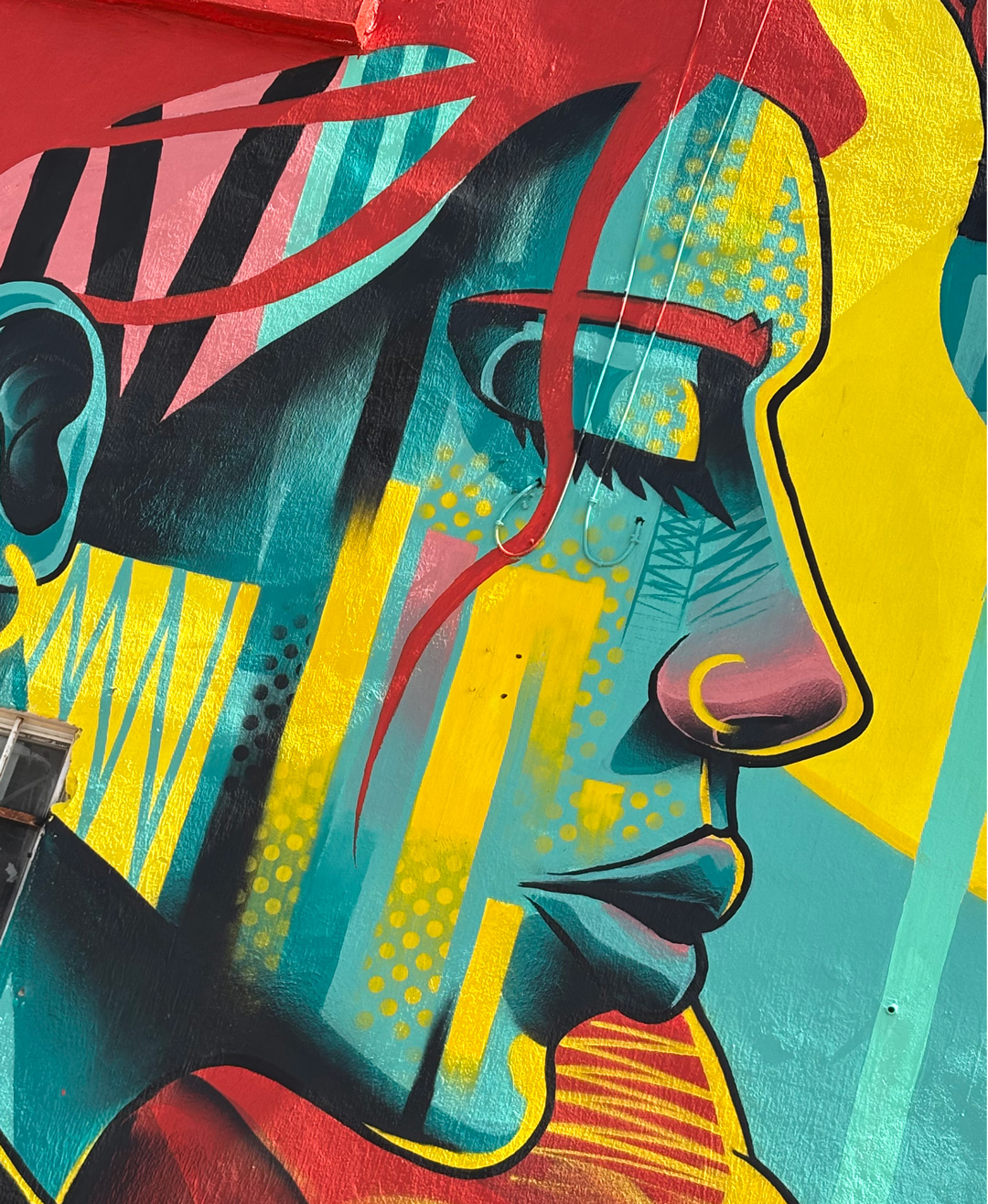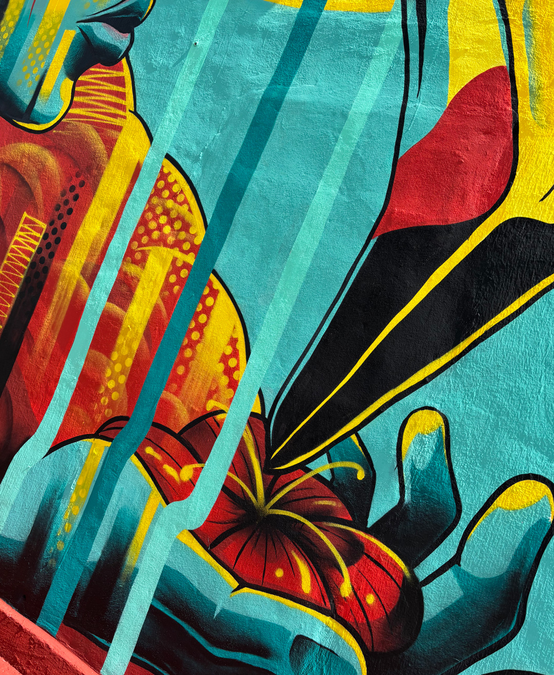 In Cancun, behind all the luxury and extravagance, lies Villas de Otoch, a remote and humble neighbourhood where the real people who keep Cancun running live. There are no enormous hotels there, only big hearts. This mural represents the beauty in difference, the loveliness of the unusual.